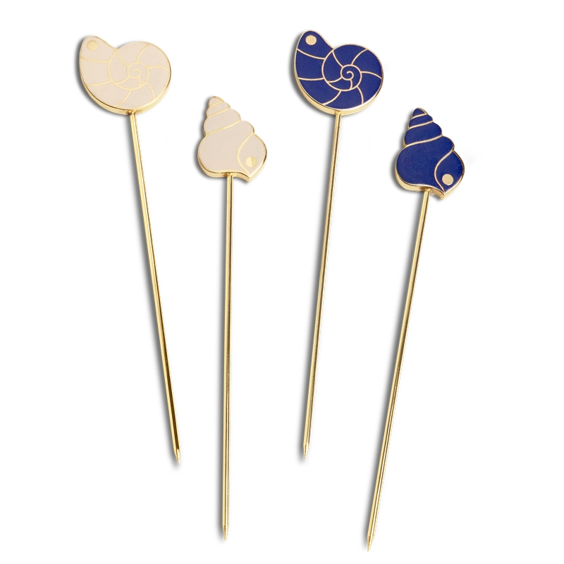 Ensemble de 4 piques à cocktail et apéritif plaqués or, chacun avec un motif de poisson pour une identification facile. Parfait pour garder votre apéritif ou collation bien rangé et élégant — réutilisable, pratique et prêt pour la fête. Taille : 11,5 cm de long avec un symbole d’environ ø 2 cm Matériau : Acier plaqué or, sans danger pour les aliments, avec émail